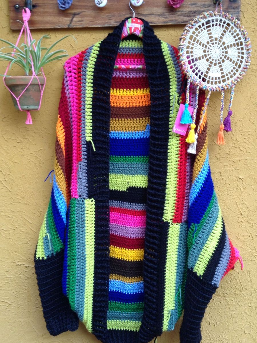 Casaco Blusa De Frio Cardiga Pontas Trico Croche Colorido