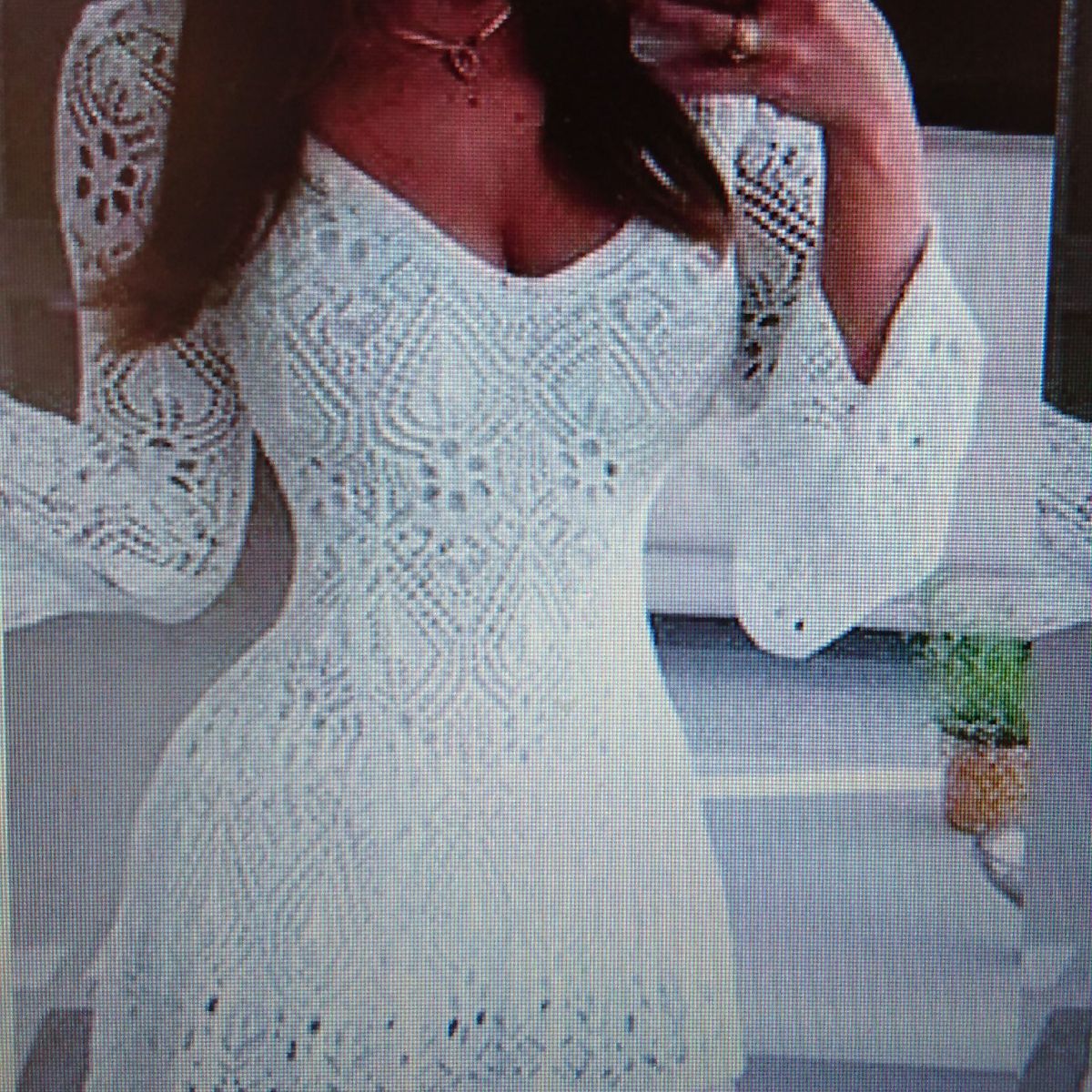 Vestido Curto Manga Flare Crochê Branca