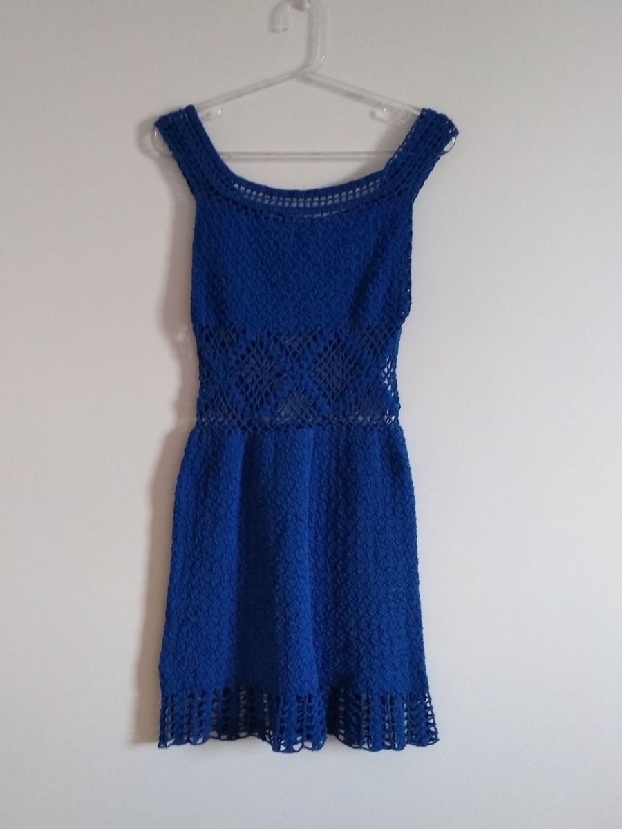 Vestido Curto Decote Redondo Detalhe Croche Azulbranco