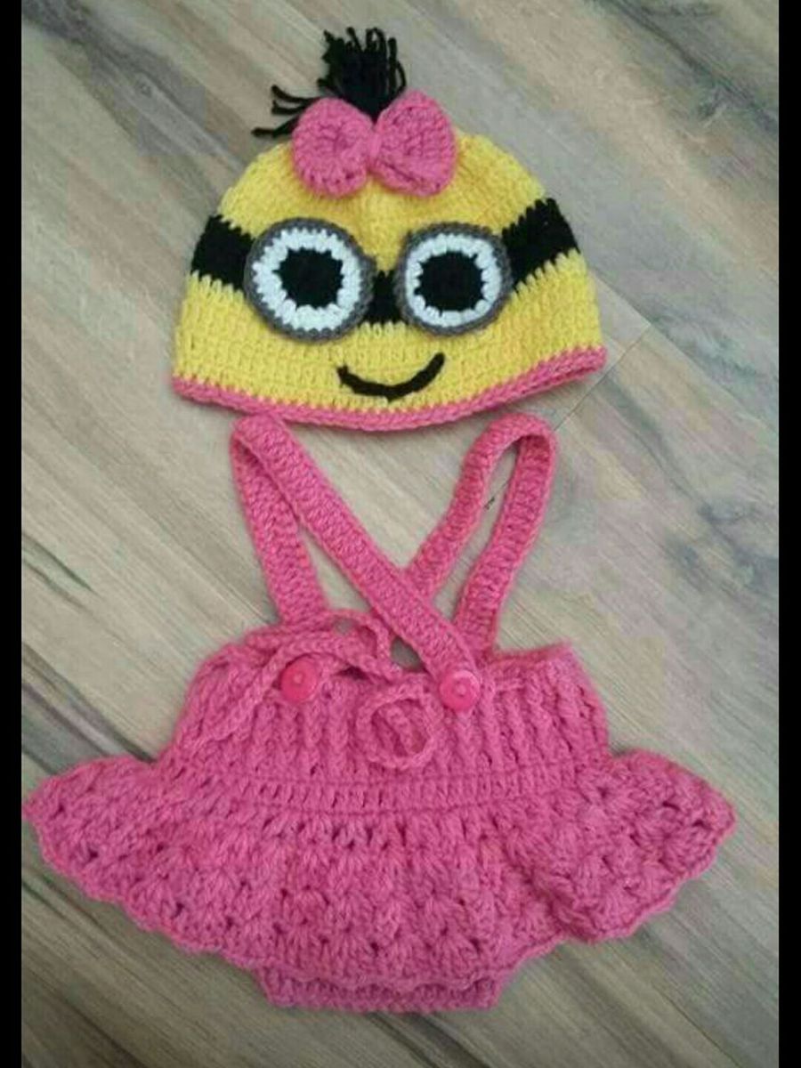 Gorro De Crochê Bebê Minion Aprendendo Crochê