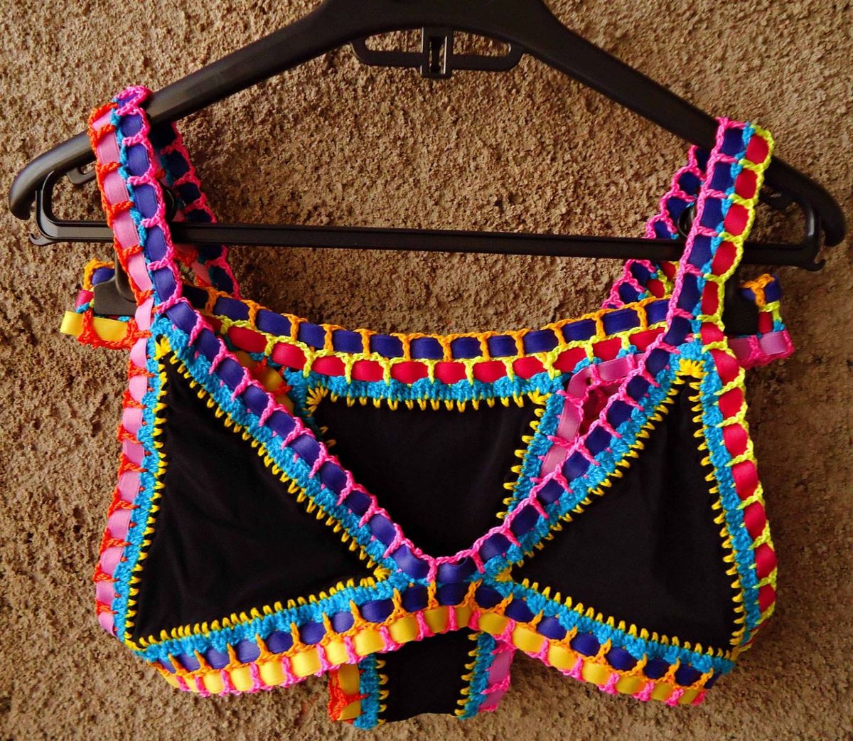 Biquíni De Crochê Neon Com Preto