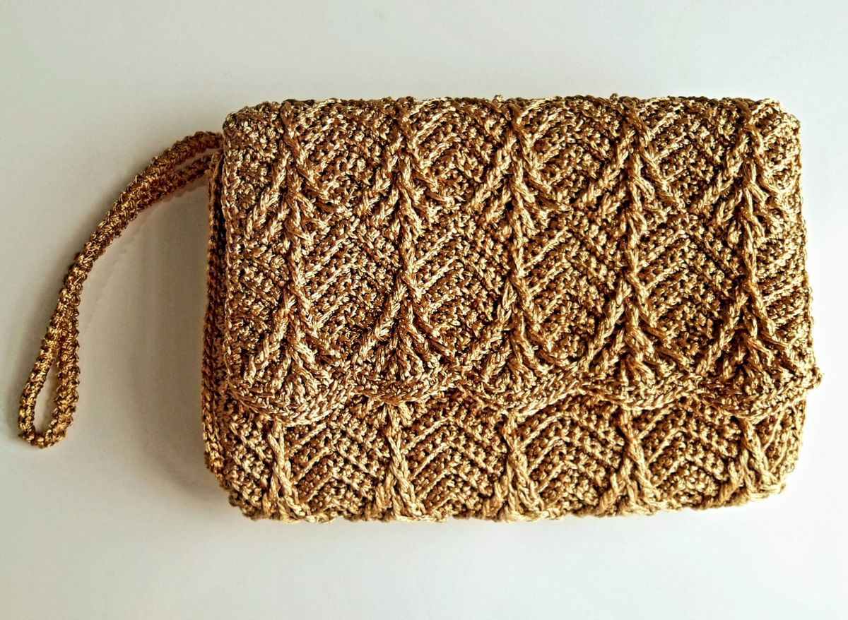 Bolsa Clutch De Crochê Com Fio Dourado Dubai