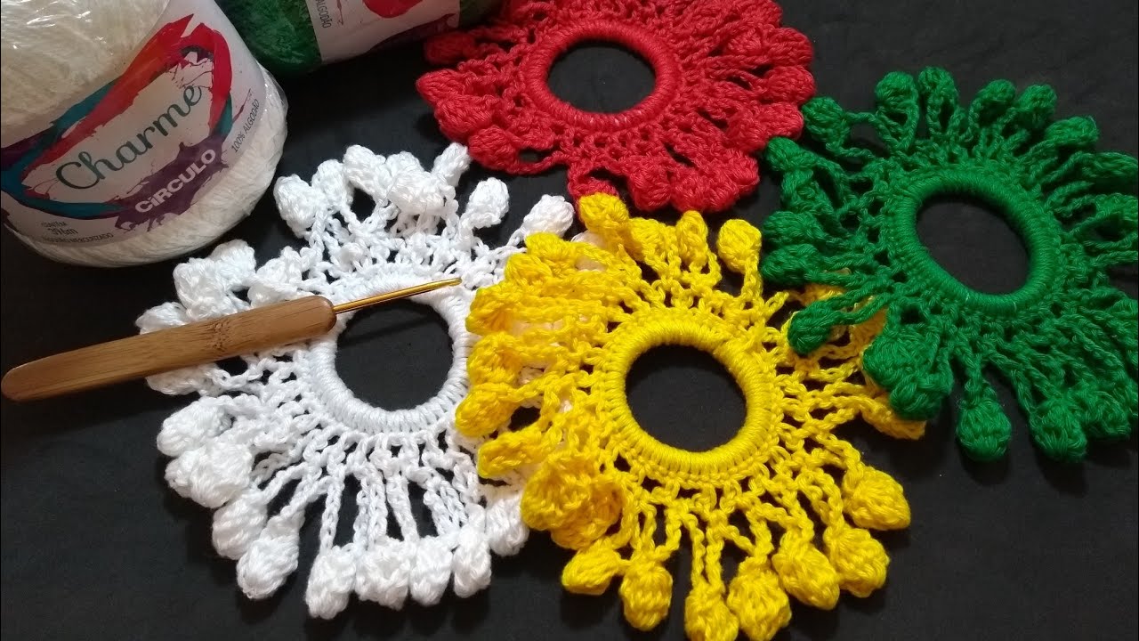 Trio De Centro De Mesa De Crochê Neve Por Jny Crochê
