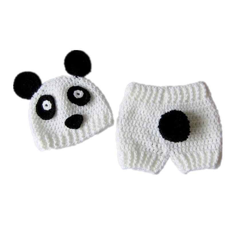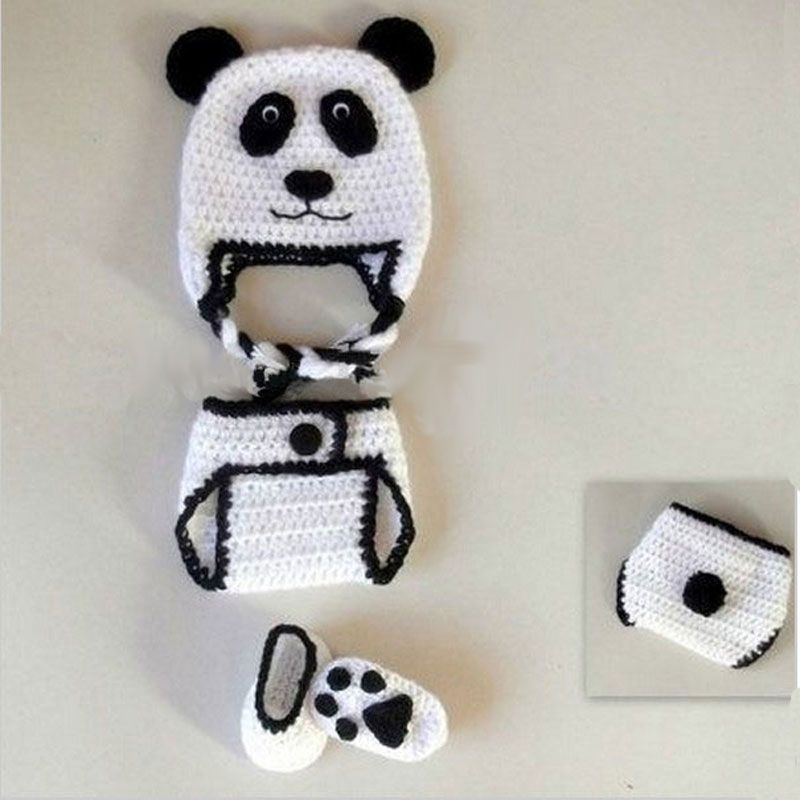 Compre Adorável Recém Nascido Urso Panda Traje Handmade Malha De Crochê Do Bebê Da Menina Do Menino Branco Preto Animal Panda Gorro E Shorts Set