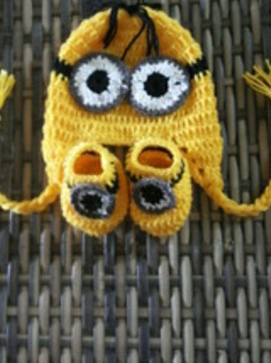 Touca E Sapatinho Dos Minions De Crochê