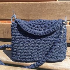 Clutch Bolsa De Crochê Em Fio De Malha Na Cor Jeans