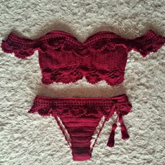 Biquíni Croche Ciganinha Marsala Pronta Entrega Roupas E