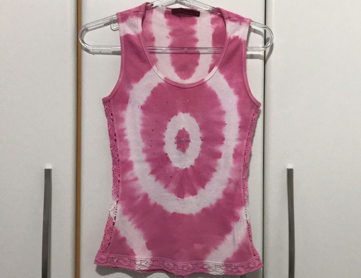 Blusa Costa Nadadora Rosa Estampada Com Crochê Na Lateral Tamanho P