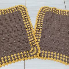 Conjunto 2 Tapetes De Crochê Amarelo E Marrom 75x49cm
