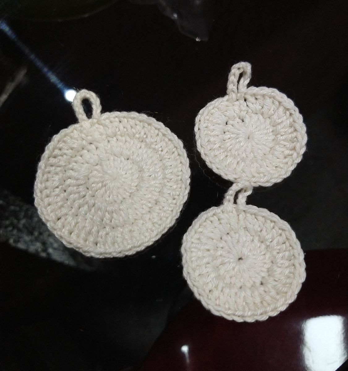 Discos de algodao feito a croche para remover maquiagem e limpeza de pele.