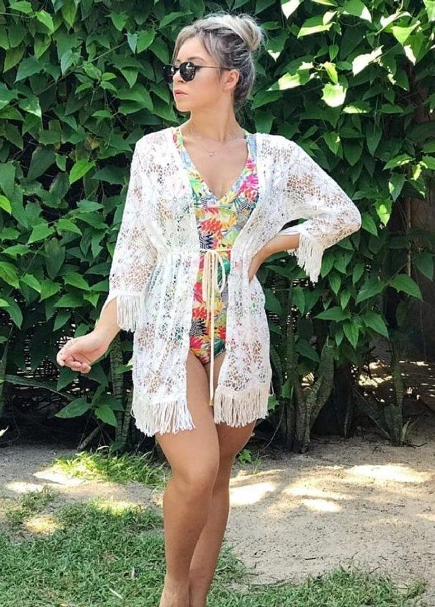 Saída De Praia Renda Aberta Franja Elastano Tendência Moda Praia Verão 2020