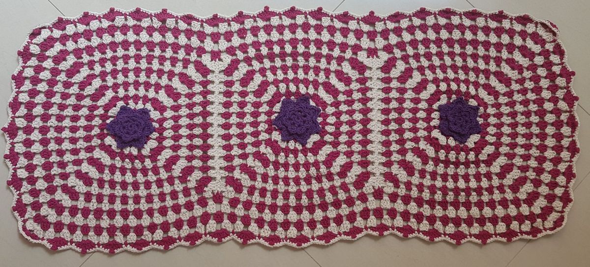 tapete de croche roxo com branco